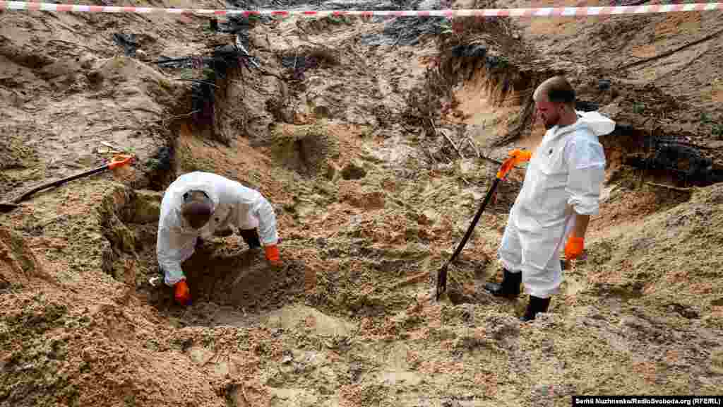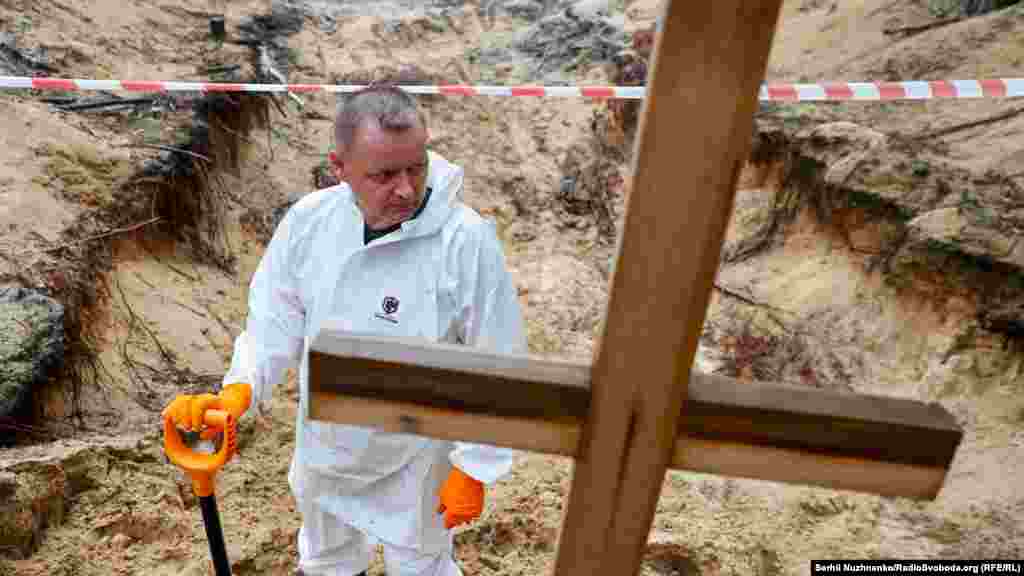 «Я тут побачив місце, де поховані військові ЗСУ. Є факти – наприклад, зв’язані руки – що їх катували і вбивали впритул», – розповів Дмитро Лубінець у коментарі Радіо Свобода на місці знайденого поховання.