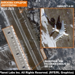 За допомогою сервісу Planet.com Білоруська редакція Радіо Свобода отримала супутникові знімки та ймовірні координати розташування російського військового літака A-50, який, можливо, був ушкоджений вибухами 26 лютого. Що ж побачив супутник на аеродромі в білоруських Мачулищах?