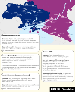 Навчання «Об’єднані зусилля-2020», які в українському Міністерстві оборони назвали відповіддю на «Кавказ-2020», поширилися ледь не на всю територію України. Одночасно з ними на Яворівському полігоні у Львівській області відбуваються також навчання Rapid Trident-2020. За кілька днів до початку навчань 17 вересня начальник Головного управління доктрин та підготовки Генерального штабу Збройних сил України генерал-майор Олексій Таран повідомив, що в перебігу навчань планують використовувати зокрема безпілотні літальні апарати RQ-4D Global Hawk.