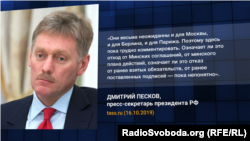 «Вони дуже несподівані і для Москви, і для Берліна, і для Парижа. Тому тут поки важко коментувати. Чи означає це відхід від Мінських угод, від мінського плану дій, чи означає це відмову від раніше взятих зобов’язань, від раніше поставлених підписів – поки не зрозуміло», – заявив прессекретар президента Росії Дмитро Пєсков.