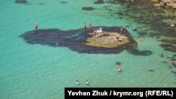 Зверху добре видно «всипані» засмаглими і не дуже тілами прибережні скелі. Купатися в цих прозорих водах без ласт, маски й трубки, значить позбавити себе доброї половини вражень.