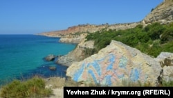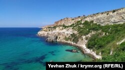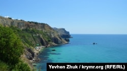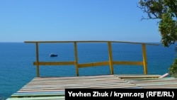 Краєвиди зверху, звичайно, приголомшливі. Для милування морем і скелями хтось обладнав невеликий поміст з дощок, оздоблених у кольори веселки. Фарба вицвіла на сонці. Подивитися є на що: зліва сусідній мис Бронєвий, потім мис Лермонтова, а вдалині височіє мис Фіолент.