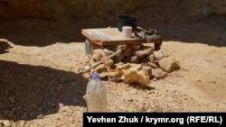 А ось і одне з помешкань, про які всі місцеві ЗМІ пару років назад писали. Тоді тут влаштувалася ціла колонія «маргіналів». Нанесли смердючих вживаних матраців, унітазів і всякої іншої гидоти. Багато хто вважав їх звичайними бездомними, але це не так. «Основний кістяк маргінальної тусовки ‒ близько 30 осіб, кримчани або приїжджі, ‒ розповідав один місцевий дачник. ‒ У них є місце реєстрації або своє житло, але немає постійної роботи. Вони переїжджають у свої «літні резиденції» на мис Виноградний просто тому, що їм там добре «тусуватися». На наметах висять оголошення з проханням пожертвувати їм продукти, цигарки або щось міцніше. Як то кажуть: справжньому індіанцю завжди скрізь ніштяк», ‒ пише севастопольське видання «Примечания».