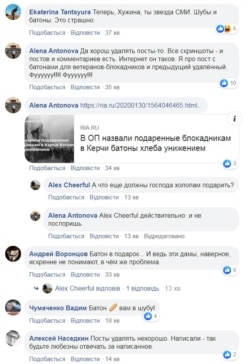 У коментарях користувачі соцмережі висловили здивування з приводу вибору подарунків для блокадників. «Значок і булка хліба. Соромно. Противно. Не по-людськи», – написав один з учасників обговорення Андрій Довгалюк.