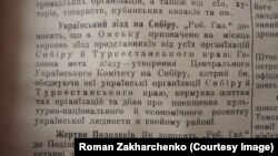 – Справа у тому, що була ще предтеча цього з’їзду – Перший Український військовий з’їзд Сибіру наприкінці червня–на початку липня 1917 року. Саме згідно з постановами цього з’їзду зібрався перший громадянський з’їзд. Військові ініціювали українське політичне життя Сибіру. Завдяки тим мобілізованим українським солдатам і офіцерам, які опинилися у сибірських підрозділах, виникло і розбудувалося українське життя на Сибіру.