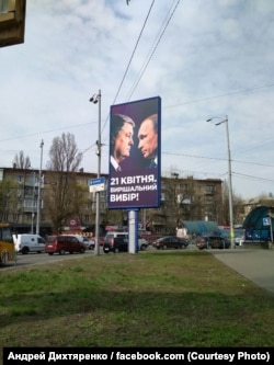 «21 квітня. Вирішальний вибір» – плакати із таким написом, а також зображеннями кандидата в президенти України Петра Порошенка навпроти президента Росії Володимира Путіна почали з'являтися на українських вулицях менш ніж за два тижні до другого туру виборів і спричинили справжній скандал.