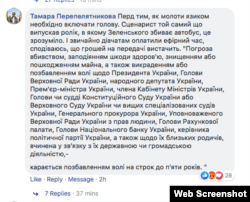 Народна депутатка партії «Європейська солідарність» Ірина Геращенко назвала цю ситуацію «кінцем епохи гідності»: «Ми стрімко будуємо поліцейську державу. На страхах, залякуванні, арештах, конфіскаціях, тиску, під улюкання натовпу».