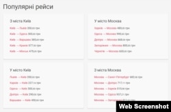 Серед актуальних пропозицій компанії: квитки на рейси до Москви, Санкт-Петербурга, Києва і Львова.