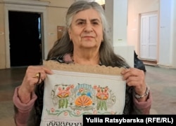 Олена Лазько виїхала з прифронтової зони і вже майже два роки мешкає в Дніпрі. Близько пів року вона з родиною прожила під обстрілами. Із собою з дому переселенка, каже, взяла найцінніше – свої вишивки. А ще – врятувала від війни старовинний вишитий рушник.