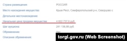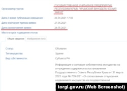 За інформацією російського порталу торгів, на аукціон у травні виставлені 11 об'єктів, розташованих у селі Скворцове Сімферопольського району. Це адміністративна будівля, диспетчерська, сім гаражів та інше майно.
