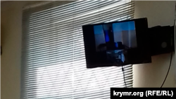 Два телевізори в залі суду транслювали те, що відбувається в кабінеті слідчого ізолятора з порожнім стільцем і двома конвоїрами. Зачитавши заяву засудженого про бажання брати особисту участь у процесі, а також вислухавши адвокатів, які пояснили, що в режимі відеозв'язку їхній підзахисний не зможе отримувати консультації в необхідній кількості, приватно та в потрібному обсязі, суддя Олена Спасенова запитала через відеозв'язок у конвоїрів, чому вони не доставили засудженого в кімнату.