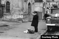 Він дуже багато їздив по Україні. І ось цього в нього багато. Він вибирав типові ситуації способу життя радянської людини. Він у квартири не заходив, не міг, а крім того, він був фотографом архітектури. Тому абсолютна більшість його фотографій зроблена на вулиці, на тлі будинків, на тлі оформлення вулиць. Людина в нього – частина міста. Він вибирав не естетичні моменти, а вибирав соціальні моменти: черга; з’явилася американська автівка – він фіксує натовп біля цієї автівки; продали оселедець і виливають маринад на вулицю; брудне підворіття і йде нещасна жінка. Може, вона й не нещасна, але в навколишньому жаху вона виглядає безпросвітно. З іншого боку, і життя безпросвітне в цьому підворітті з написом «Слава КПРС».