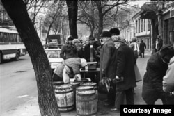 – Він вибирав типові ситуації, і про це завжди казав. Типове для радянської людини – радянська вулиця: він погано одягнений, ось ця торбинка незмінна, авоська з пляшками, цибулею або ще чимось. Неохайність вулиць передається і людям, а люди неохайні неохайно утримують вулиці. Його приваблював духовний розрух. Так, він вибирав, звісно, але вибирав типові сценки. Візьмімо, наприклад, чергу за оселедцем на вулиці: це може бути і в Сумах, і у Львові, і в Києві.